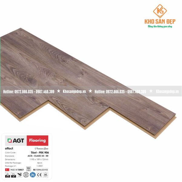 Sàn gỗ AGT 12mm PRK906 Là sàn gỗ Châu Âu chính hãng cao cấp nhập khẩu trực tiếp 100% từ Thổ Nhĩ Kỳ. Có độ dày 12mm, được tạo nên từ gỗ thông tự nhiên an toàn cho sức khỏe. Gam màu nâu trầm làm điểm nhấn ấn tượng cho không gian nội thất.