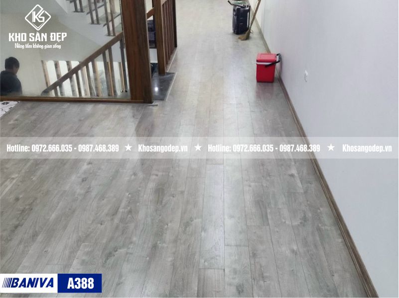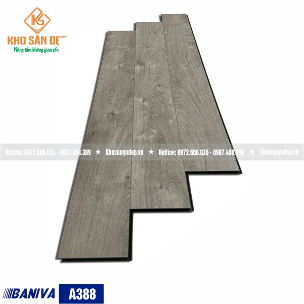 Sàn gỗ Baniva A388 góp phần phong phú bộ sưu tập ván sàn Baniva được ra đời trên dây chuyền công nghệ hiện đại nhất. Cốt gỗ HDF xanh siêu chông ẩm, chống trầy xước. Là phân khúc khá của thị trường sàn gỗ, phù hợp với nhiều khách hàng bởi giá tiền phải chăng, chất lượng tốt. Gam màu ghi xám ấn tượng, mở ra không gian thu hút, bắt mắt nhưng vẫn mang đến nét thanh thoát, nhẹ nhàng.