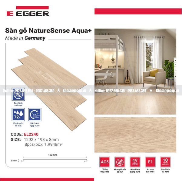 Thông số kỹ thuật ván sàn Egger Aqua 8mm EL2240