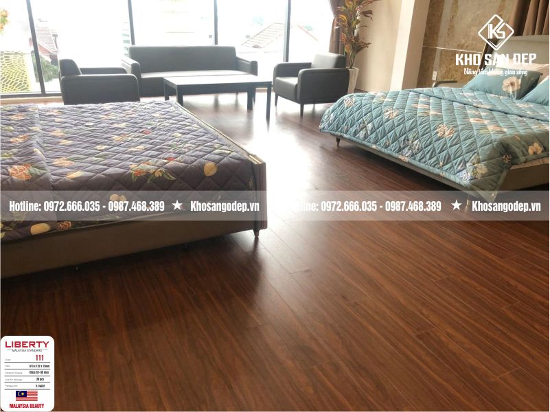 - Ứng dụng: Sàn gỗ Liberty thích hợp cho các công trình như phòng trọ, căn hộ chung cư giá rẻ, nhà cải tạo để cho thuê hay các căn hộ có nhu cầu sử dụng thấp, …..