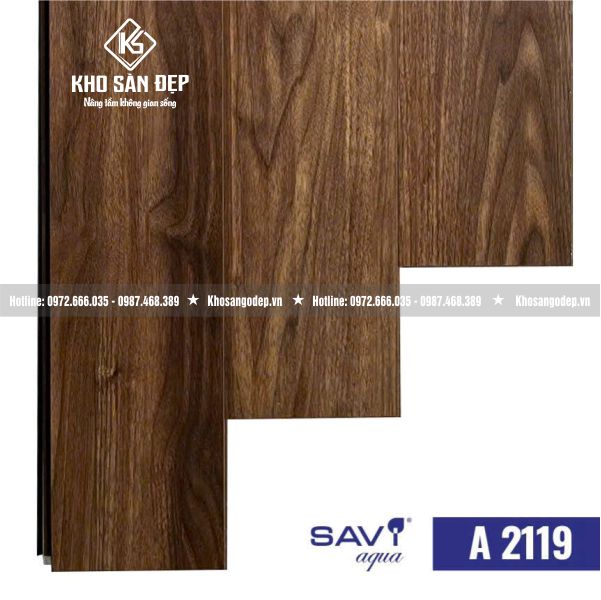 Sàn gỗ Savi Aqua A2119 Dày 12mm là sản phẩm đột phá, là bước ngoặt mới của Công Ty TNHH Thương Mại và Sản xuất Mavina. Cốt xanh chống ẩm, bề mặt sần với khả năng chống trầy xước cao. Gam màu óc chó mang lại nét sang trọng, đẳng cấp của không gian nội thất