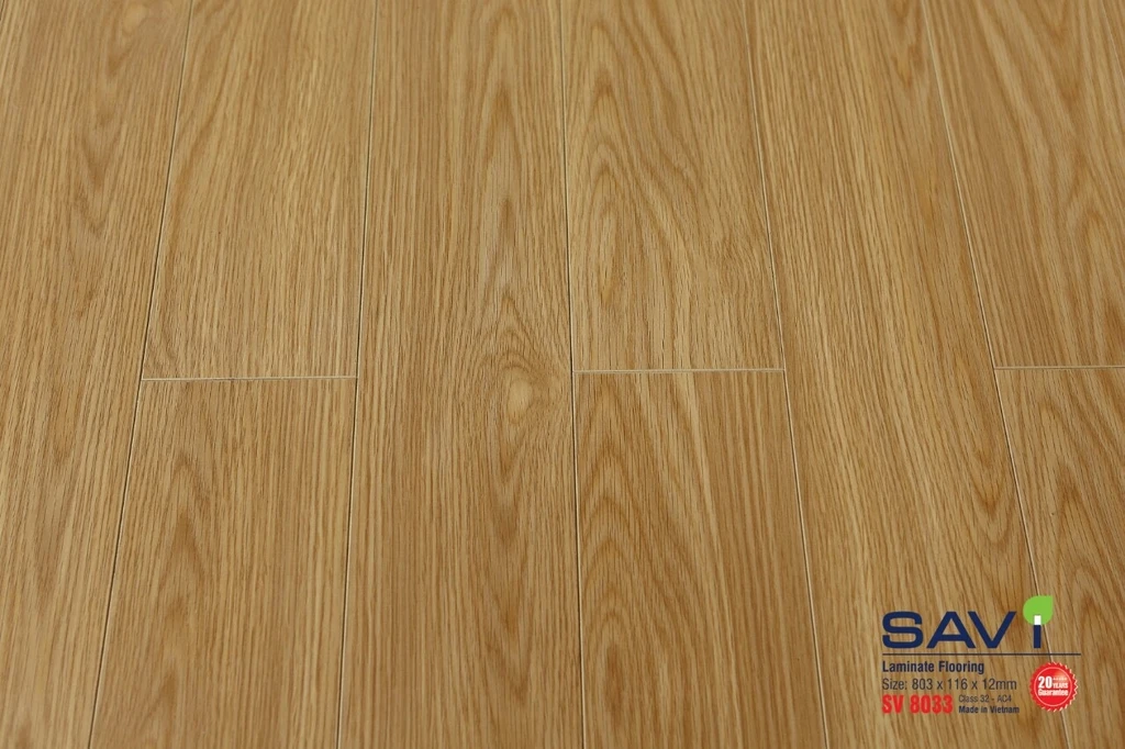 - Mã sàn gỗ: Savi SV8033 – 12mm (màu nâu nhạt)