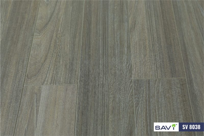 - Mã sàn gỗ: Savi SV8038 – 12mm (màu ghi lông chuột)
