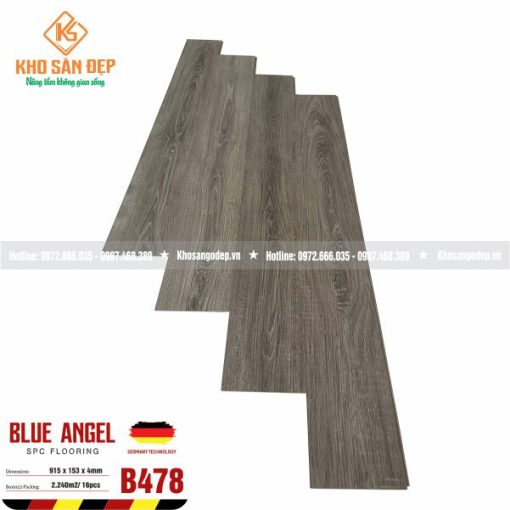 Sàn nhựa Blue Angle B478 có độ dày 4mm, gam màu xám lông chuột, cực kì ấn tượng, thường được rất nhiều kiến trúc sư lựa chọn cho thiết kế riêng. Độ dày 4mm thường sử dụng cho những nơi có độ ẩm cao, siêu chịu nước.
