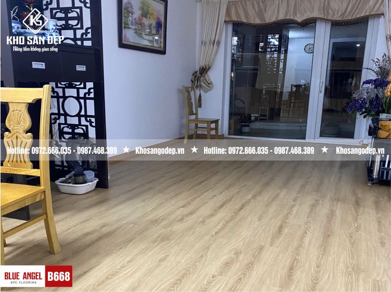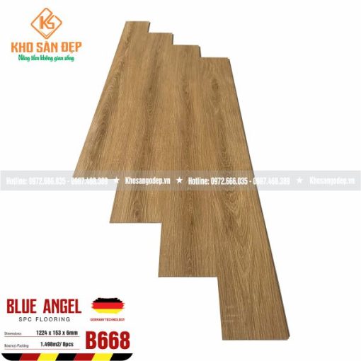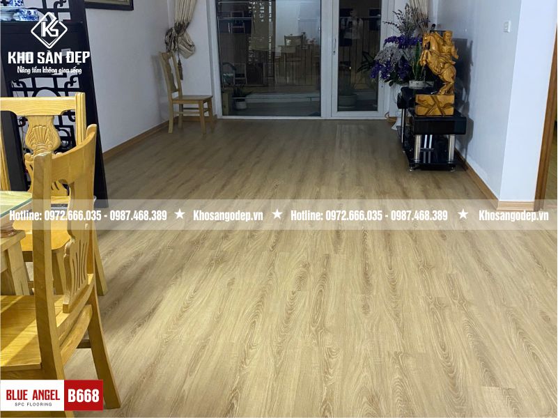 Sàn nhựa Blue Angle B668 có tông màu vàng sồi thu hút. Sàn nhựa được sản xuất tại Việt Nam dựa trên công nghệ tiên tiến nhất hiện nay. Siêu chịu nước, phù hợp với những nơi có độ ẩm cao.