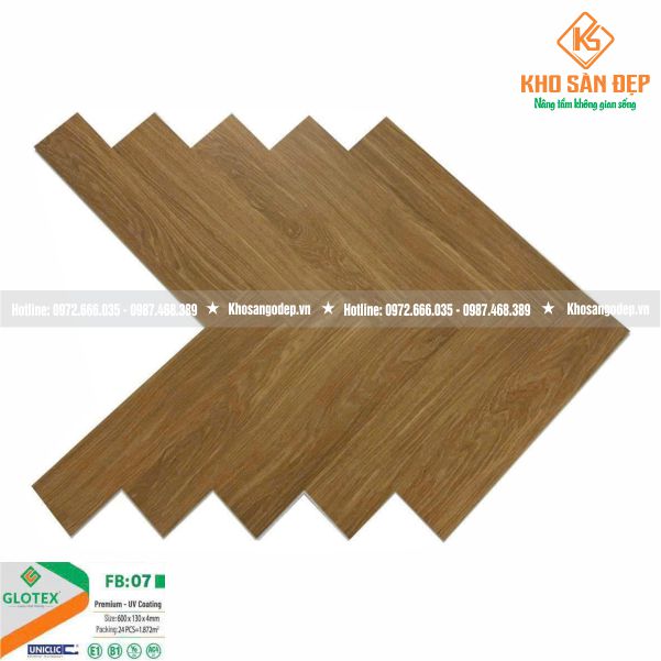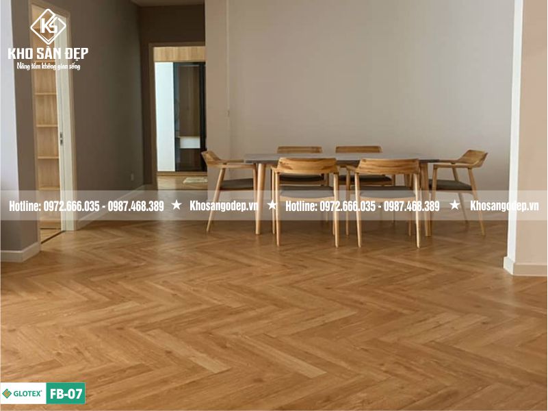 Sàn nhựa Glotex Xương Cá FB07 với gam màu vàng truyền thống luôn là lựa chọn hàng đầu của khách hàng. Sàn nhựa hèm khóa có độ dày 4mm thường được sử dụng cho những mặt bằng tương đối bằng phẳng, độ ẩm cao.