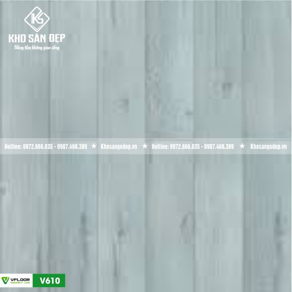 Sàn nhựa giả gỗ Vfloor V610 Với gam màu xám nhạt phù hợp với không gian rộng nhiều ánh sáng. Sàn nhựa Vfloor V610 siêu chịu nước được sản xuất trên dây chuyền công nghệ hiện đại bậc nhất.